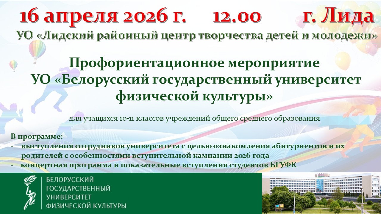 информирует, что 16 апреля 2026 г. в 12.00 часов в г. Лиде на базе УО